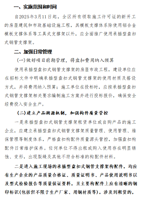 關(guān)于全面推廣應(yīng)用承插型盤扣式鋼管支撐架的通知