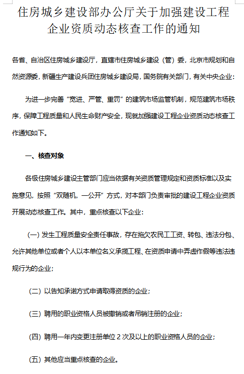 住房城鄉(xiāng)建設(shè)部辦公廳關(guān)于加強(qiáng)建設(shè)工程企業(yè)資質(zhì)動(dòng)態(tài)核查工作的通知
