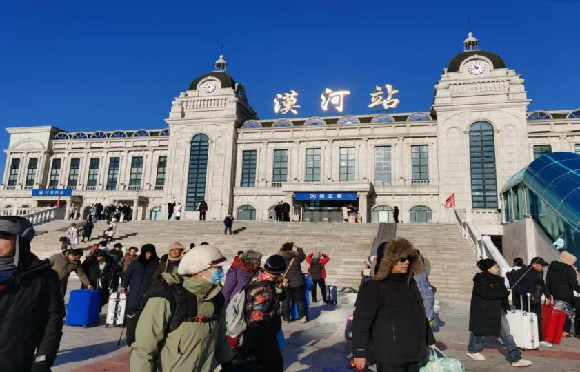 上午10點30分,列車準時抵達終點站漠河站,團隊順利對接地接并很快坐上這里的大巴。