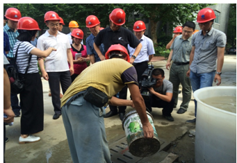 該項目由于場地的特殊性,工作開展進度受到一定的限制。趁著暑假學生放假,施工單位加緊鋪開工作面。其中下凹式綠地、潛流濕地等初見成效,部分透水路面,透水鋪裝已完成。胡海峰市長仔細聽了工作人員的介紹,詳細了解了工程的特點及進展,并就嘉興實際與工作人員探討海綿城市的設計與理念。隨后,胡市長看了不透水路面滲水的演示及屋頂綠化,胡市長提出要加快進度,保質保量完成海綿城市示范項目的建設。