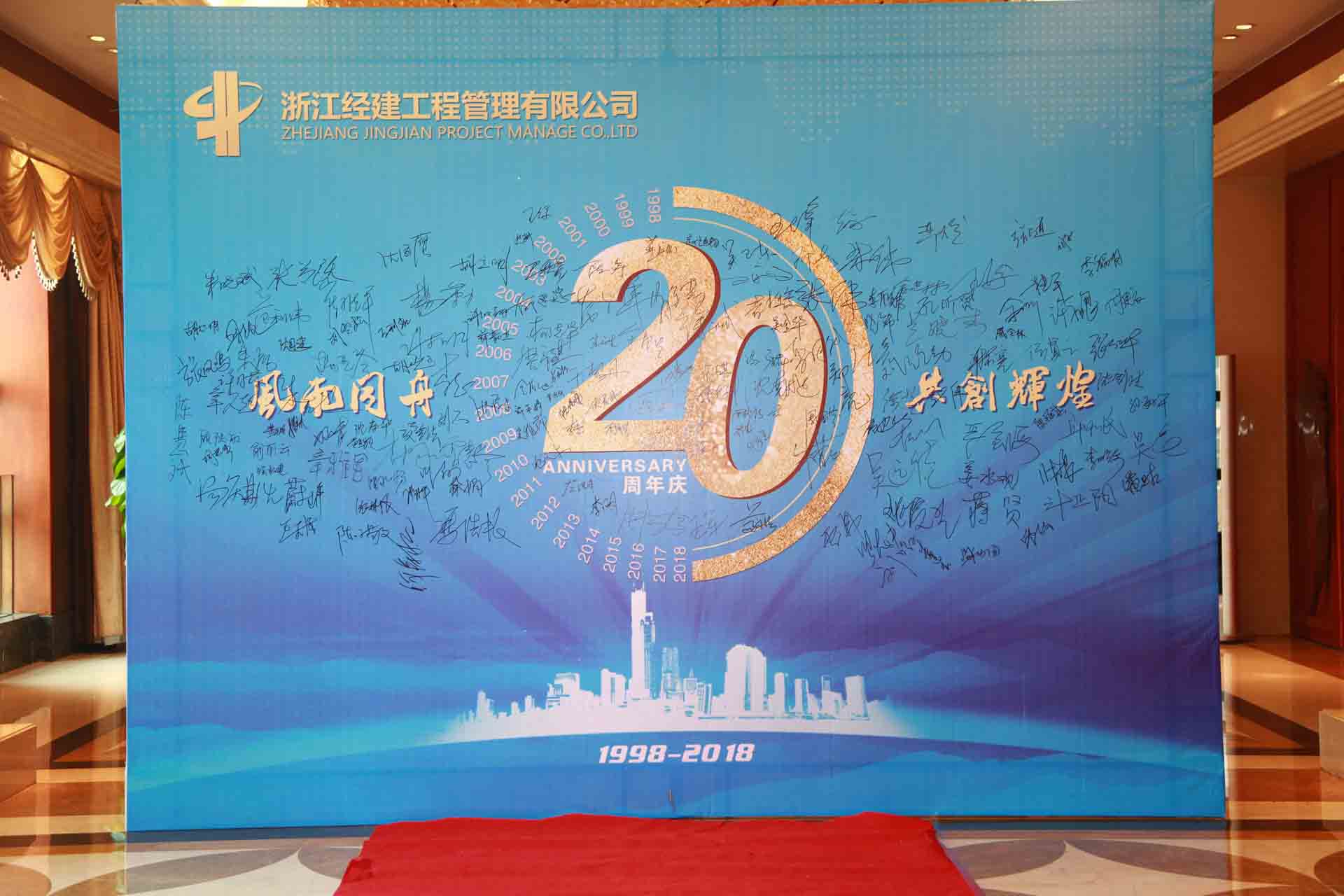 走進豪仕登大酒店三樓豪仕登廳寬敞的走廊,首先引入眼簾的是醒目的公司20周年慶典簽名墻,全體與會者都在簽名墻上簽名并合影留念,為公司20周年慶典提前預熱。