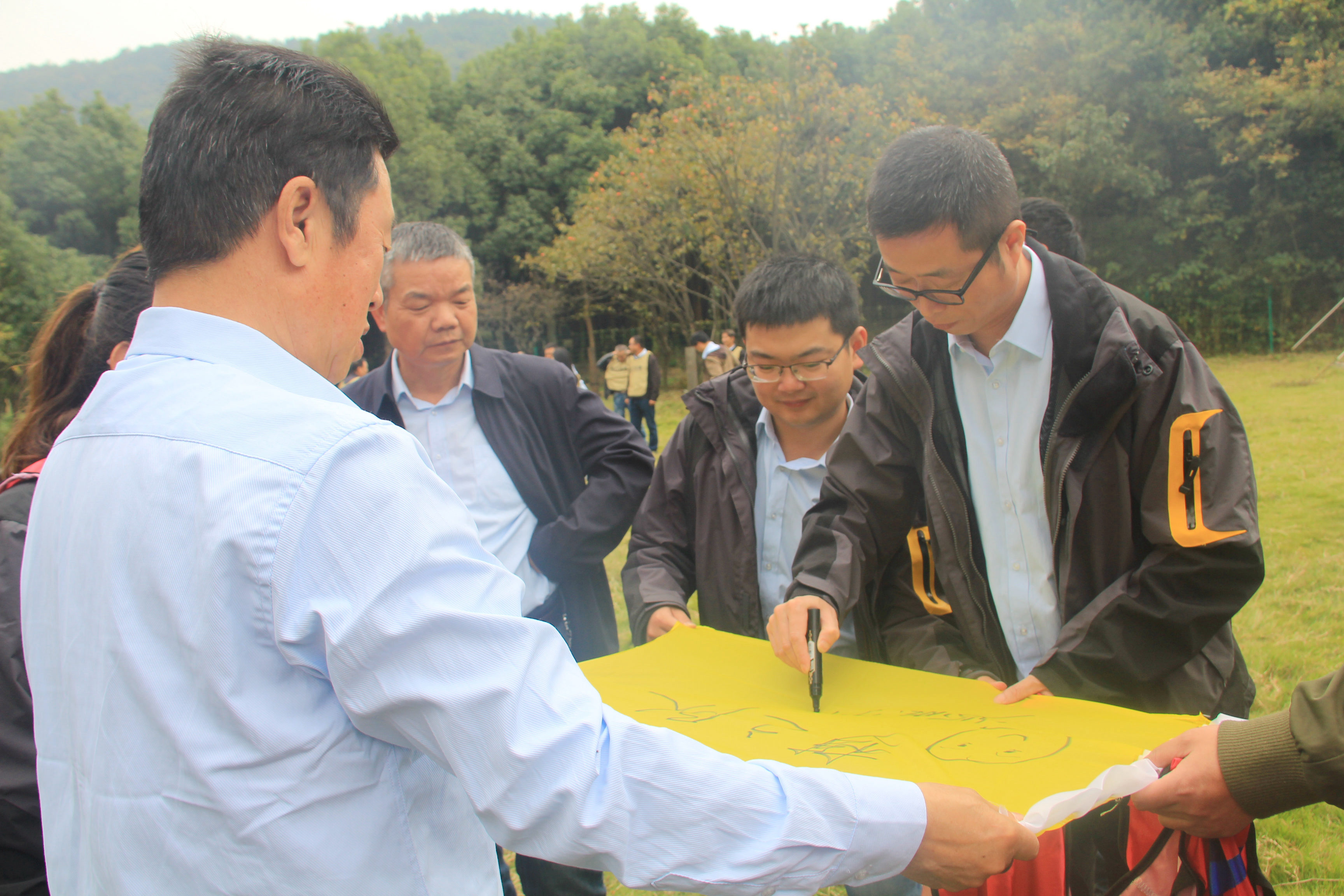 當(dāng)然在領(lǐng)略山間風(fēng)景的同時,我們頗具趣味的團建活動就正式拉開了帷幕,原本熙熙攘攘的百來人在教練的一聲高亢的指令下迅速地組隊,并按照要求完成了競選隊長、隊名、口號、隊徽等團隊搭建。