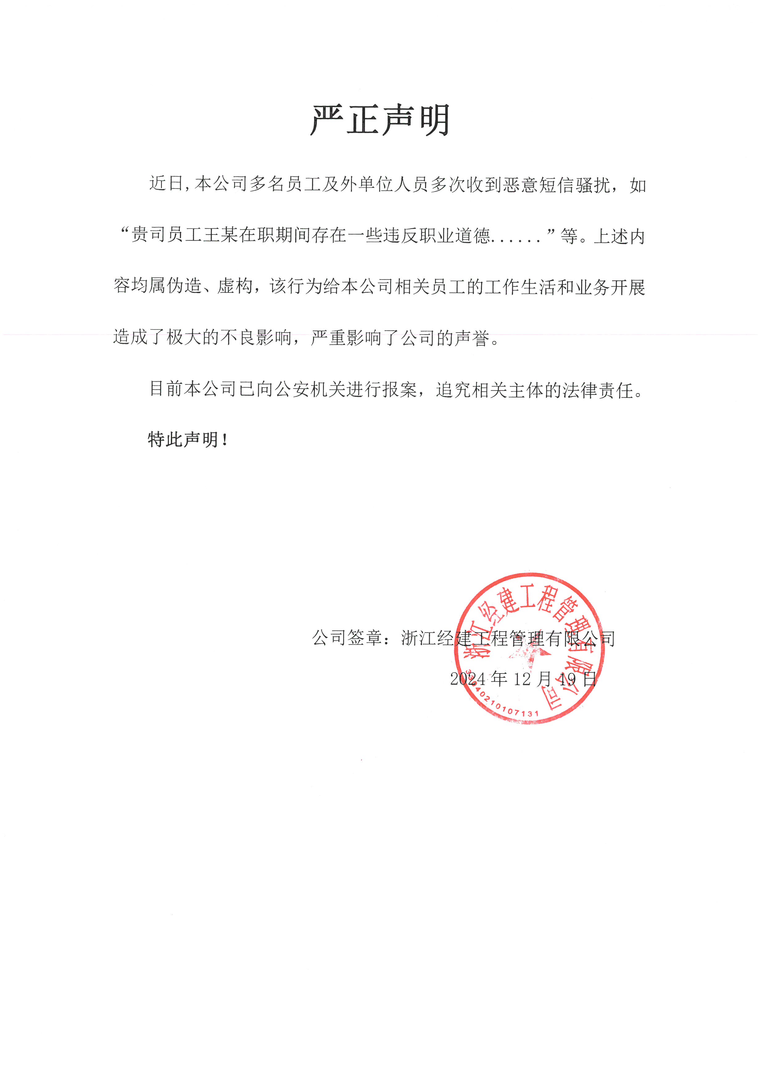 關(guān)于惡意短信騷擾事件的嚴正聲明