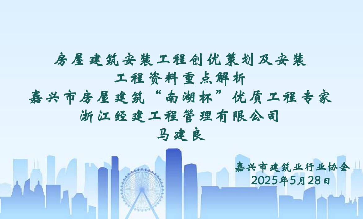 為了更好地提升創(chuàng)優(yōu)項目的工程質量,把工程創(chuàng)優(yōu)工作落到實處,嘉興市建筑業(yè)行業(yè)協(xié)會于2025年5月28日在嘉興沙龍國際賓館成功舉辦了房屋建筑工程“創(chuàng)優(yōu)系列講堂”第三課。