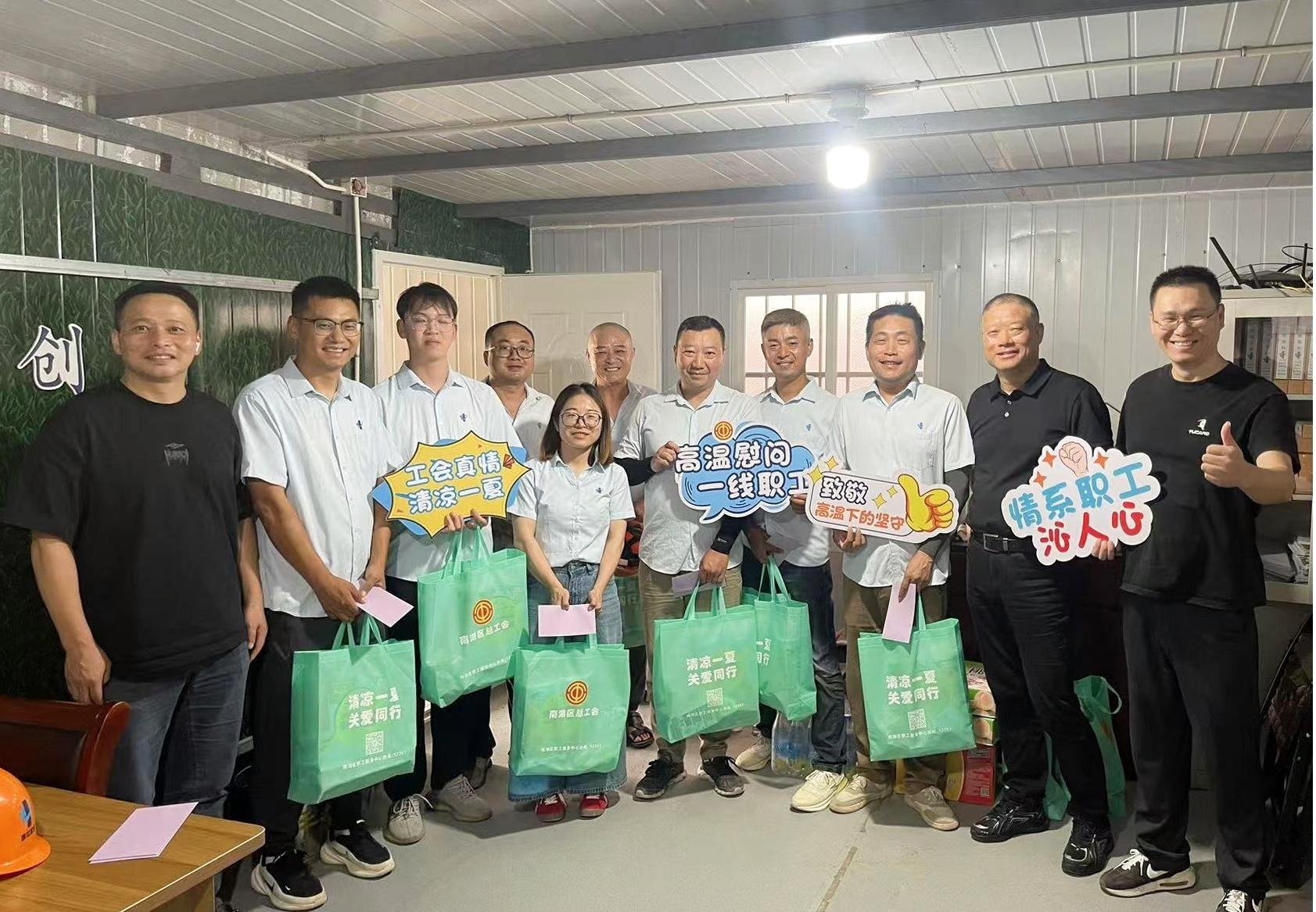 公司為項(xiàng)目員工準(zhǔn)備了實(shí)用的防暑降溫物資,包括勞保用品、防暑藥品、飲品以及新鮮水果等。每到一處,慰問(wèn)組都詳細(xì)了解員工的工作和生活情況,叮囑大家注意防暑降溫,合理安排作息時(shí)間。